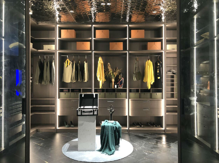 3.衣帽間,家的氣質(zhì)所在,高門(mén)大柜,既有外在氣質(zhì),更有內(nèi)涵,內(nèi)部空間的精細(xì)分工,讓男女主人公的衣物、包包、首飾、皮帶、鞋等得到合理收納。